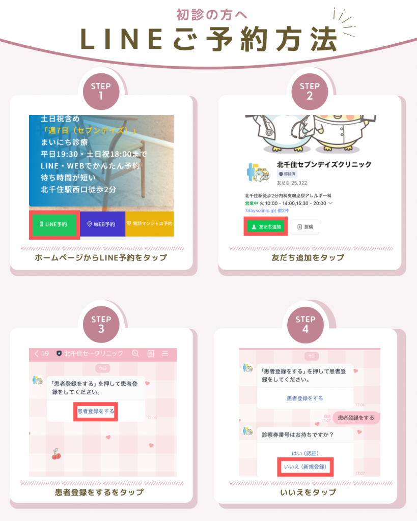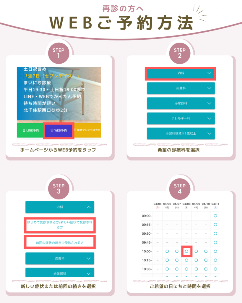 オンラインで予約可能で、よくあるクリニック内での待ち時間を短縮できます。予約の際にオンライン問診票を記入して頂くことで、診療もスムーズです。